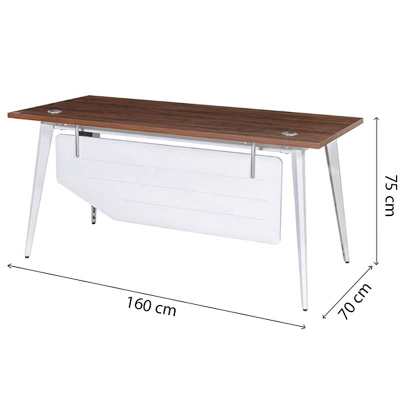 Bàn làm việc sử dụng khung thép dập định hình sơn tĩnh điện. Mặt bàn gỗ Melamine cao cấp, yếm bàn sơn PU
