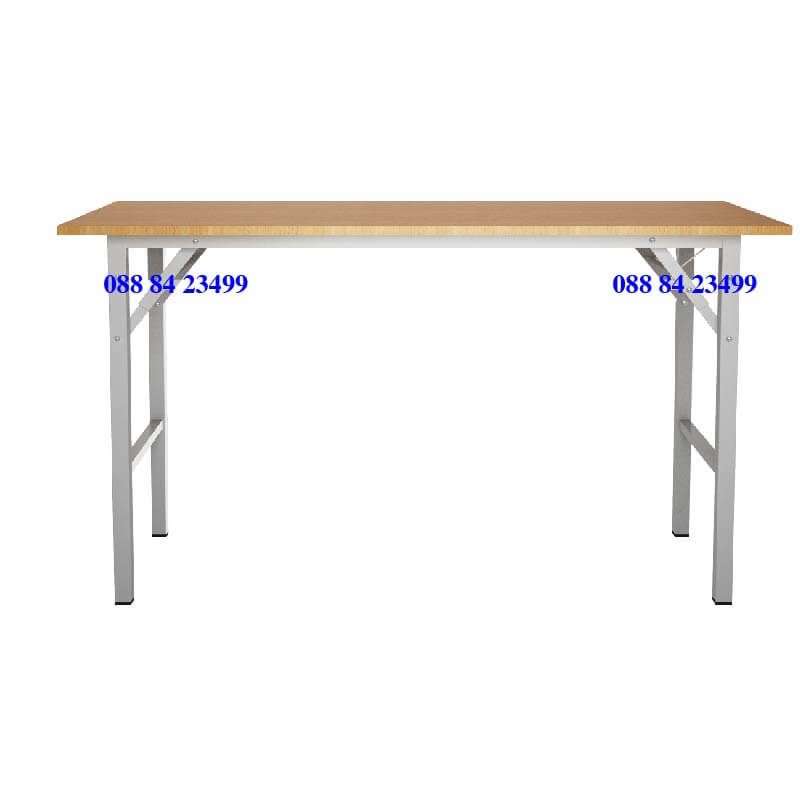 Bàn chân gấp được sản xuất bởi 2 công ty hàng đầu là Hòa Phát và Xuân Hòa. Chân bàn là ống thép vuông 25x25 sơn tĩnh điện màu Ghi sáng, mặt bàn bằng gỗ Melamine cao cấp dày 18mm