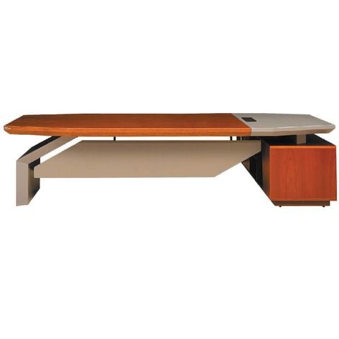 Bàn lãnh đạo cao cấp sử dụng chất liệu gỗ Veneer kết hợp Melamine (VM20). Bàn được thiết kế với kiểu dáng hiện đại giữa 2 tông màu vân gỗ và màu ghi tạo sự nổi bật, trẻ trung
