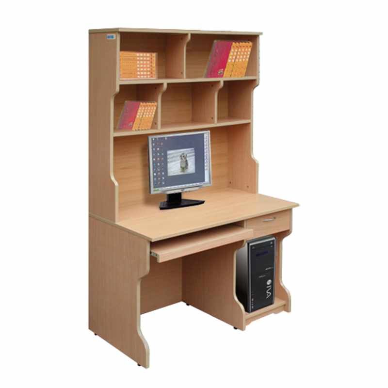 Bàn học sinh liền giá sách, có bàn phím, kệ CPU cố định và 1 ngăn kéo