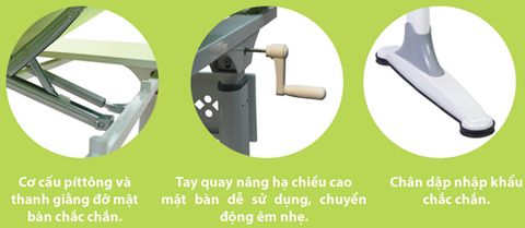 + Điều chỉnh được độ cao thấp và độ nghiêng của mặt bàn