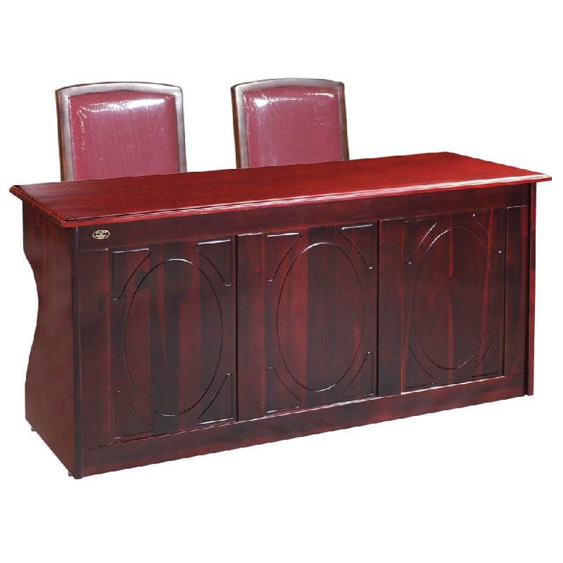 Bàn hội trường gỗ tự nhiên Hòa Phát. Chân bàn cong kiểu chữ C. Yếm bàn soi rãnh trang trí hình tròn. Bàn được sản xuất trên dây truyền công nghệ hiện đại và được sử dụng liên kết đồng tiền rất chắc chắn và đảm bảo thời gian sử dụng lâu