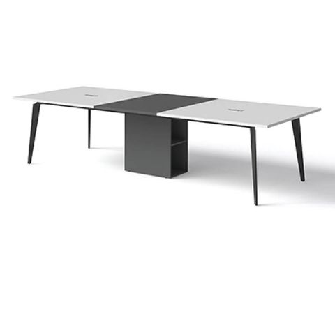 Bàn Phòng Họp, Bàn Họp Văn Phòng 3m2, chân sắt tạo hình kiểu thanh cài bút, có hộc tủ ở giữa làm chân bàn, sơn đen sần hoặc kem hiện đại, thanh giằng hộp 25x50. Mặt bàn gỗ MFC chống xước, chống cong vênh, mối mọt, bền bỉ theo thời gian. Có nhiều màu sắc lựa chọn phù hợp sở thích, màu chủ đạo văn phòng.