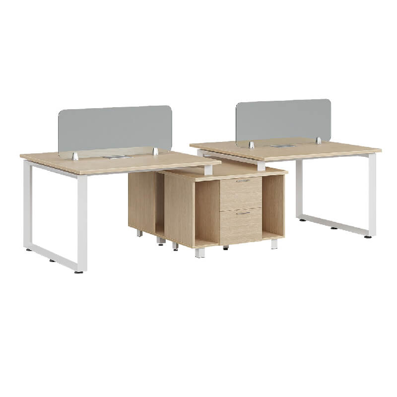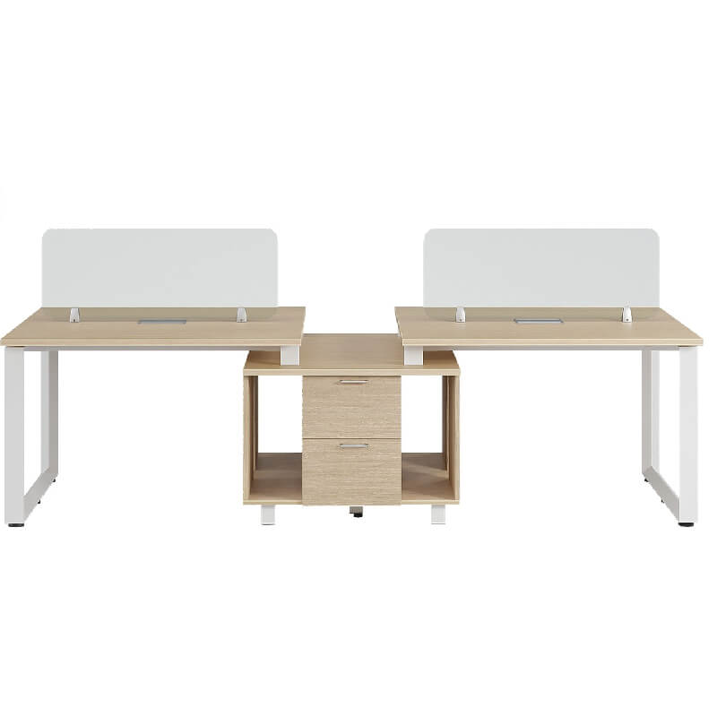 Cụm Bàn làm việc 4 chỗ khung chân thép tam giác C5 sơn tĩnh điện. Mỗi bên có 1 tủ phụ gồm 2 ngăn kéo và 2 khoang để CPU. Liên kết chắc chắn và hiện đại.