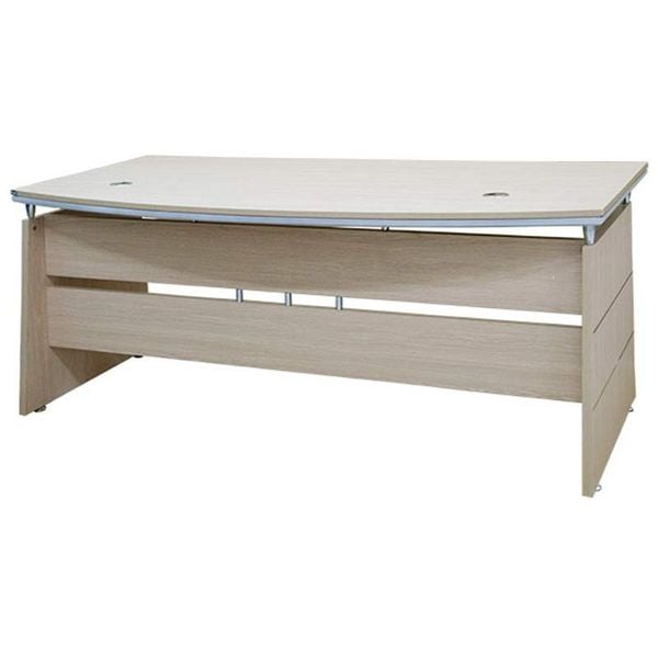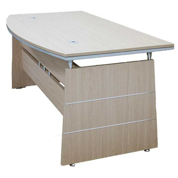 + Bàn lãnh đạo gỗ Melamine, mặt bàn lượn cong có ốp gỗ sơn trang trí ở phía dưới.