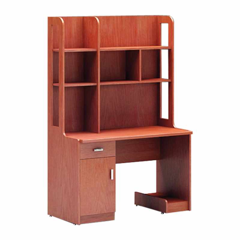 Bàn liền giá gỗ tự nhiên có hộc liền, kệ để CPU, trên mặt bàn là hệ thống giá để tài liệu.