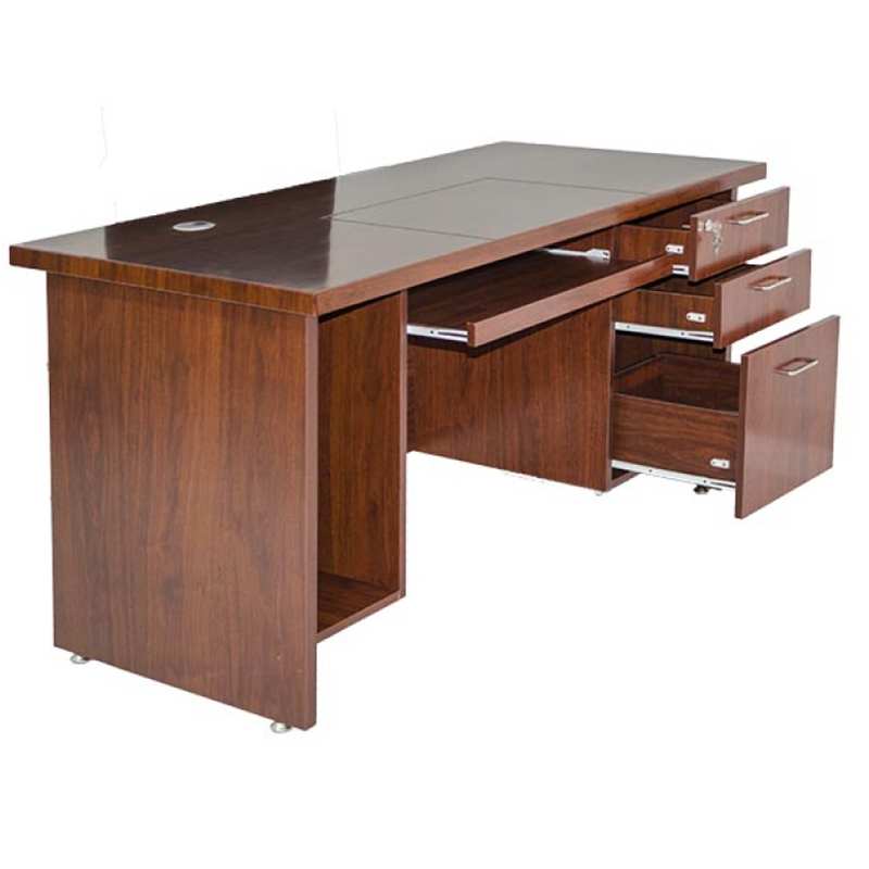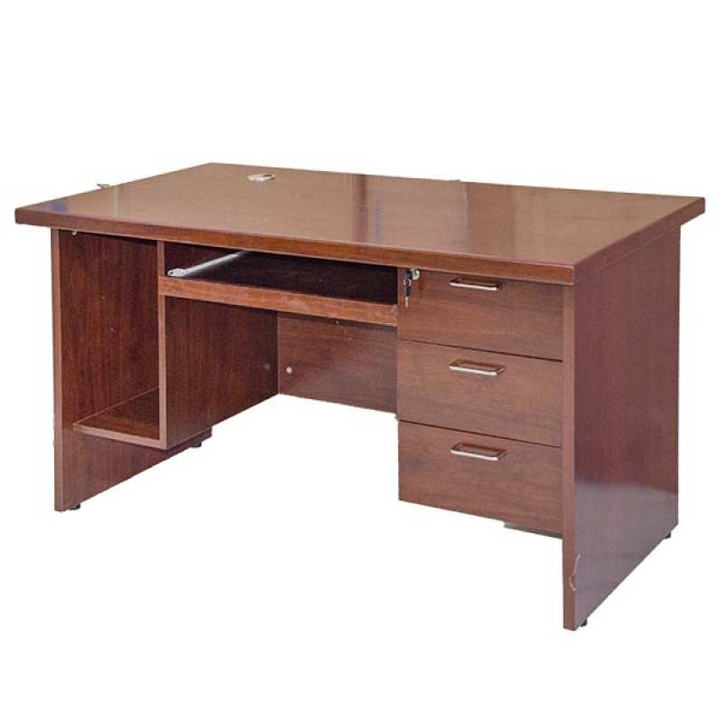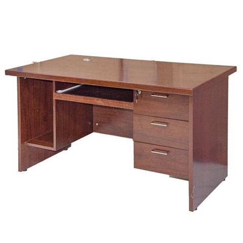 Bàn hình chữ nhật, có hộc liền 3 ngăn kéo lửng, bàn phím và khoang để CPU