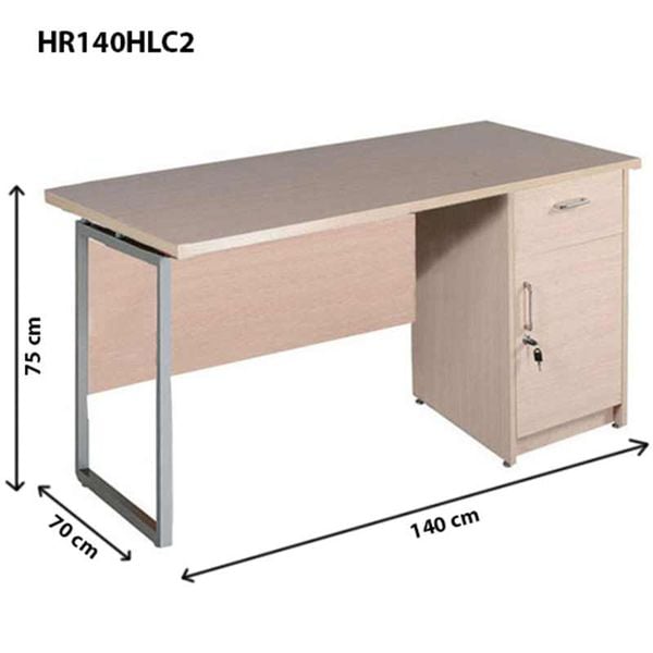 Bàn làm việc khung thép hộc liền, mặt gỗ Melamine. Bàn sử dụng yếm tôn hoặc yếm gỗ.