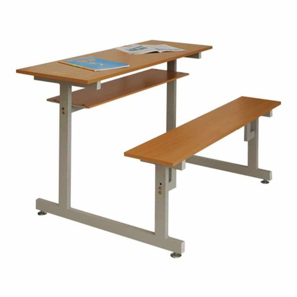 Bàn liền ghế không tựa. Khung thép sơn tĩnh điện, gỗ Melamine, chân bàn hình chữ I, ống thép □25x50 sơn tĩnh điện