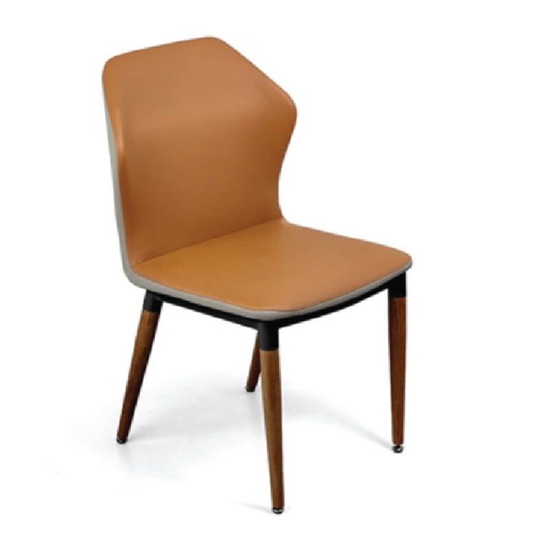 Ghế có đệm ngồi và tựa lưng bằng tấm thép dập khuôn liền khối, bề mặt bọc mút và da PU nhiều màu theo bảng màu tùy chọn, khung chân sắt kết hợp 4 chân gỗ Ø38 tóp côn có chức năng tự điều chỉnh cân bằng.