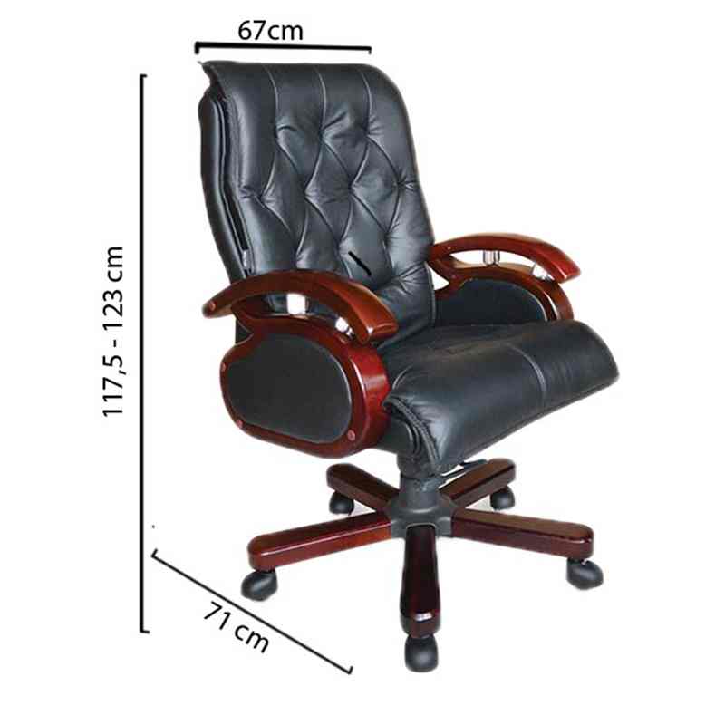 Ghế lãnh đạo cao cấp đệm tựa bọc da thật tại phần tiếp xúc trực tiếp với người sử dụng. Chân tay gỗ sơn PU