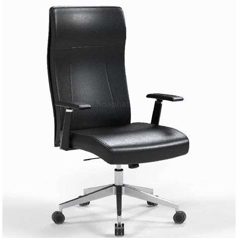 Chất liệu: Đêm tựa ghế là cốt gỗ bọc da, Tay ghế bằng nhựa có cơ cấu điều chỉnh độ cao thấp, Chân 5 sao bằng hợp kim nhôm hoặc thép mạ có bán xe di chuyển