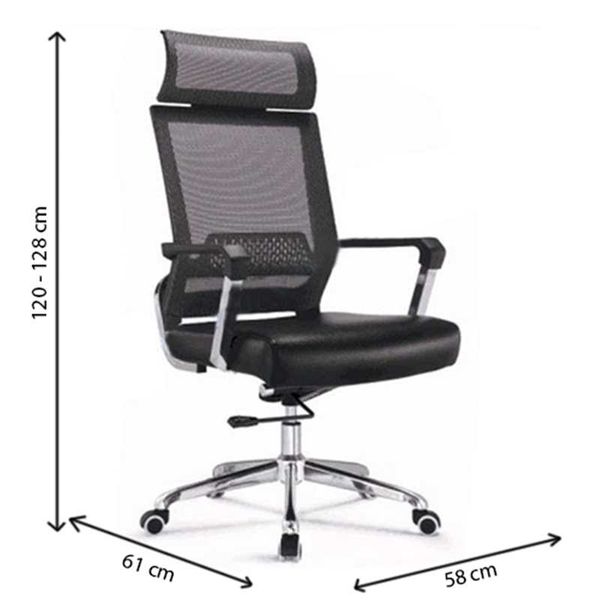 Ghế lưới cao cấp khung tựa nhựa bọc vải lưới, đệm mút da công nghiệp. Chân mạ, tay ghế nhựa kết hợp thép mạ. Ghế có 2 màu: nhựa đen, lưới + da công nghiệp đen và nhựa trắng, lưới + da công nghiệp đỏ.