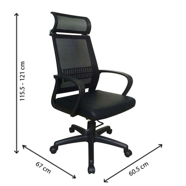 Ghế lưới có đỡ đầu, cơ cấu đỡ lưng chắc chắn. Khung tựa nhựa bọc vải lưới, đệm mút bọc da công nghiệp. Chân, tay nhựa