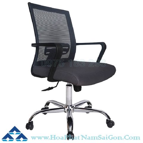 Ghế lưng trung tựa lưới khung nhựa, chân sắt mạ, đệm mút bọc vải lưới, khung tay nhựa