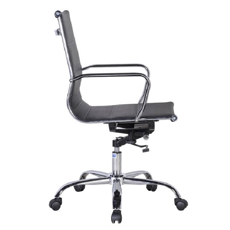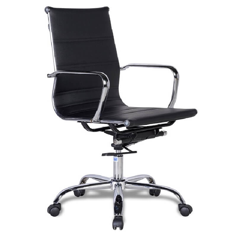 Ghế xoay lưng trung khung thép bọc da công nghiệp, chân tay thép mạ.