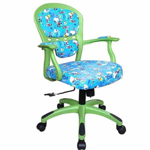Ghế xoay trẻ em TE06, chân tay, tựa nhựa màu xanh, đệm, tựa in vải hình trang trí