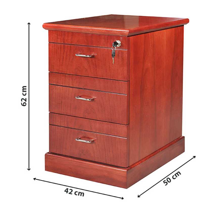 Hộc có 3 ngăn kéo, sử dụng khóa dàn, không có bánh xe.