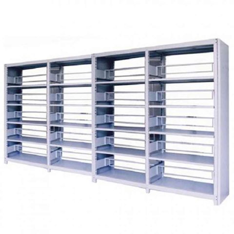 Giá thư viện 4 khoang sử dụng 2 mặt, có 5 tầng để tài liệu. Các đợt và thanh chắn có thể di động giúp điều chỉnh độ cao