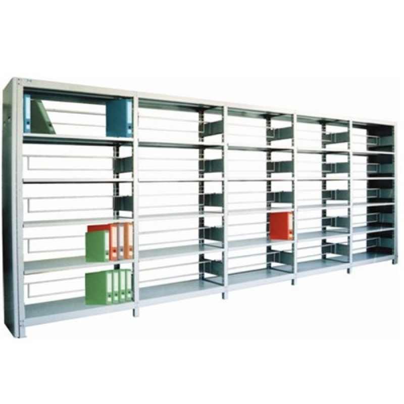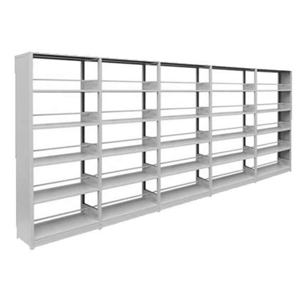 Giá thư viện 5 khoang sử dụng 2 mặt, có 5 tầng để tài liệu. Các đợt và thanh chắn có thể di động giúp điều chỉnh độ cao