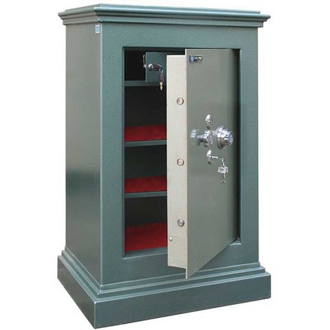 Két KA181 đứng, có 2 khóa chìa, 1 khóa mã, 1 tay nắm. Cánh mở với 4 chốt chìm. Bên trong lòng két sắt có 2 đợt di động, 1 ngăn cánh mở, khóa locker
