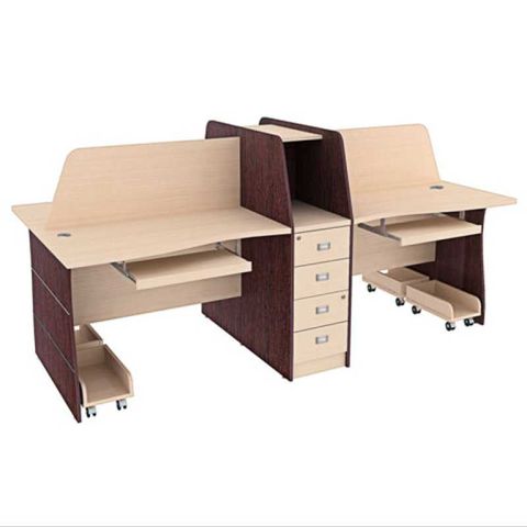 Modul 4 chỗ mặt chữ nhật có hộc liền đi kèm, vách ngăn melamine.