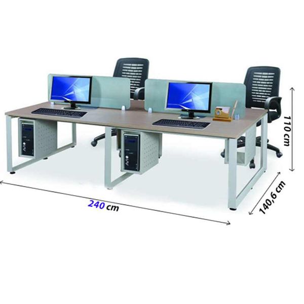 Module bàn làm việc 4 chỗ mặt chữ nhật phân tách bằng vách ngăn