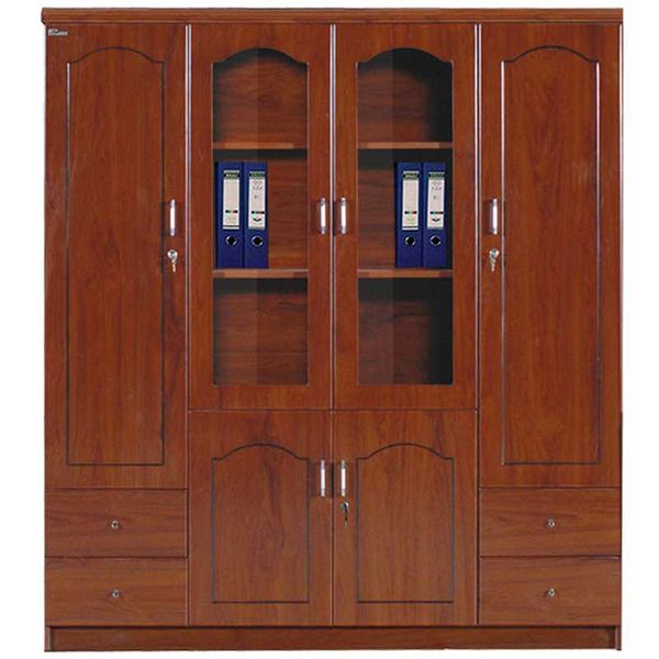 Tủ tài liệu 4 buồng, 2 buồng phía ngoài, phía trên là khoang cánh dài treo áo, phía dưới là ngăn kéo. Hai buồng giữa phía trên là khoang để tài liệu, phía dưới là cánh mở.