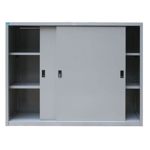 Tủ sắt sơn tĩnh điện gồm 1 khoang, 2 đợt di động, sử dụng 2 cánh thép lùa