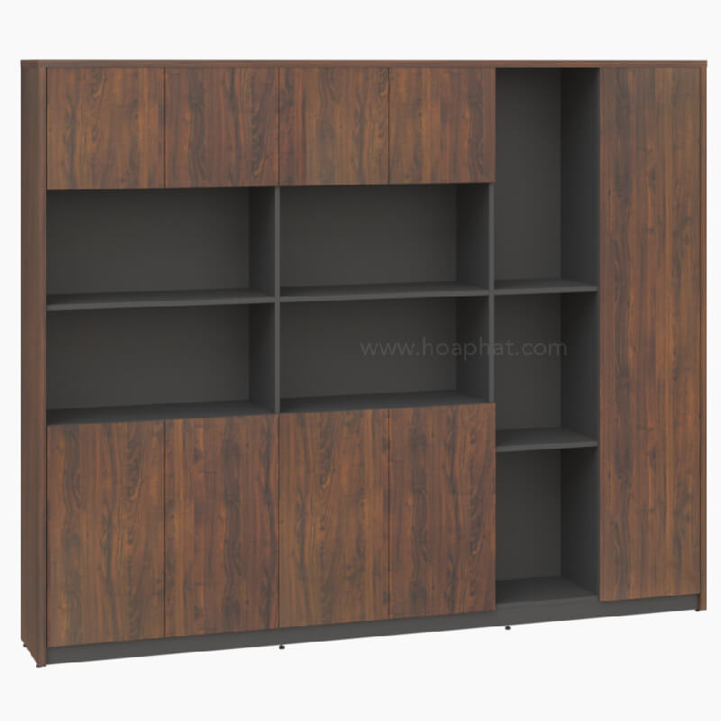 Tủ gồm các khoang có đợt để tài liệu, 1 khoang cánh dài treo áo và 2 khoang có cánh mở trên dưới