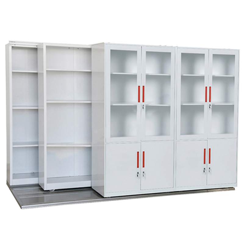 Giá để tài liệu di động sử dụng hệ thống ray trượt nhằm tiết kiệm không gian. Giá gồm 3 lớp: