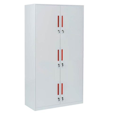 Tủ hồ sơ thép sơn tĩnh điện màu trắng sáng phù hợp với không gian văn phòng hiện đại. Tủ gồm 6 khoang cánh mở