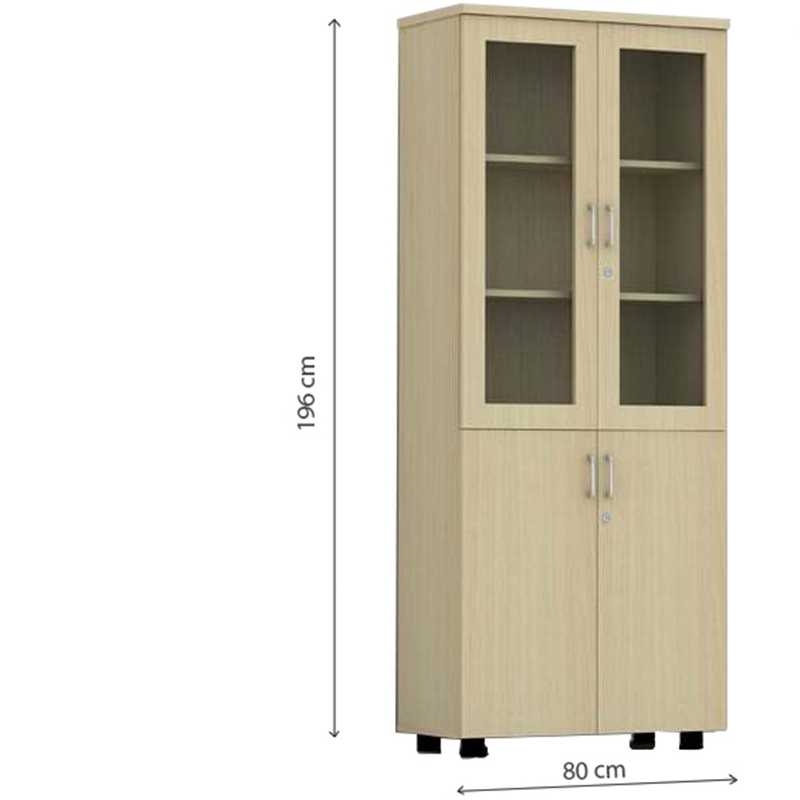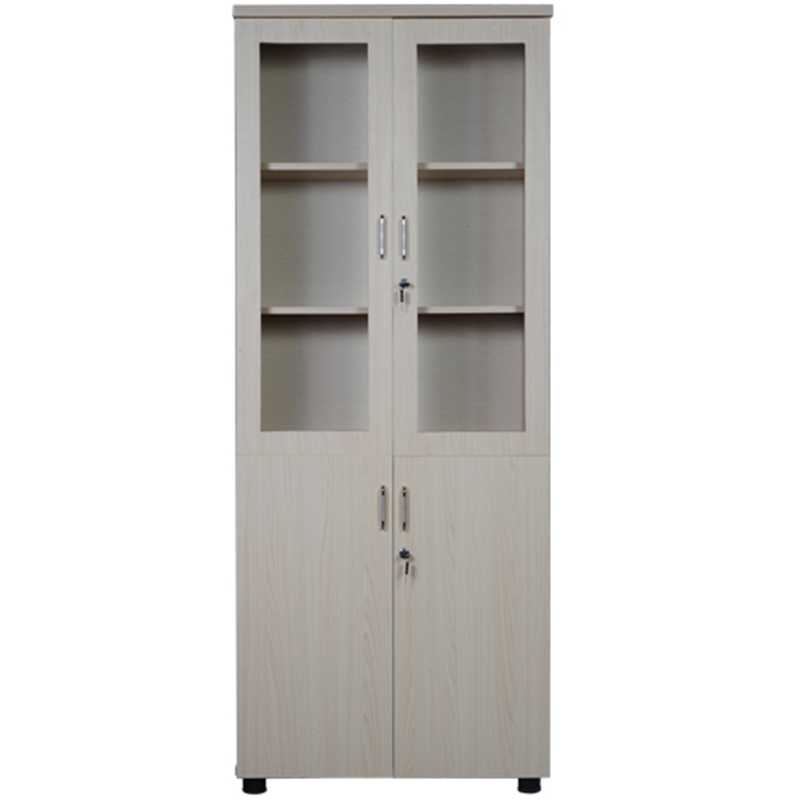 Tủ tài liệu 2 buồng gỗ Melamine, phía trên là 2 khoang cánh kính để tài liệu, phía dưới là 2 khoang cánh mở