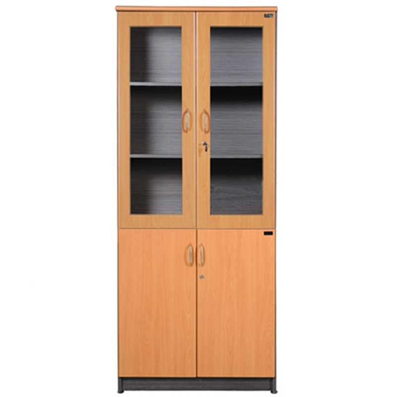Tủ tài liệu 2 buồng, phía trên là 2 khoang cánh kính để tài liệu, phía dưới là 2 khoang cánh mở