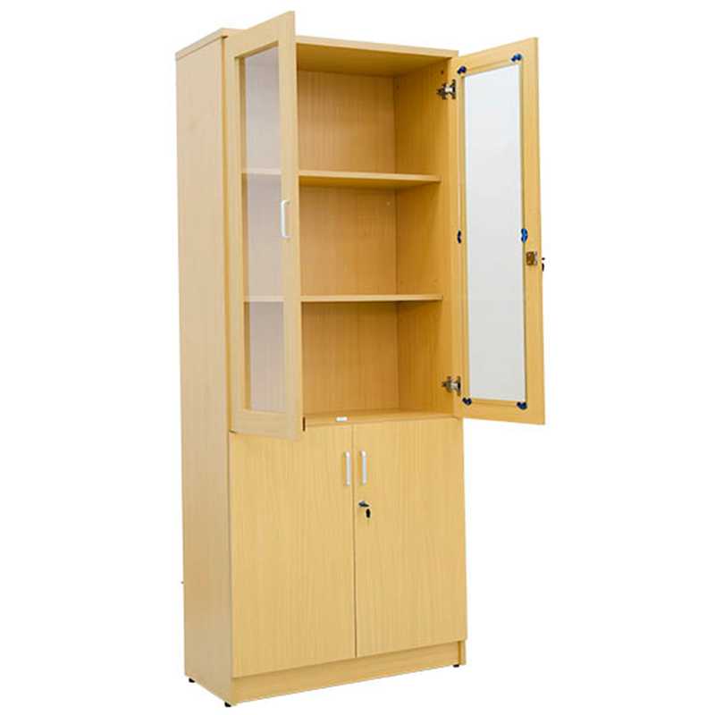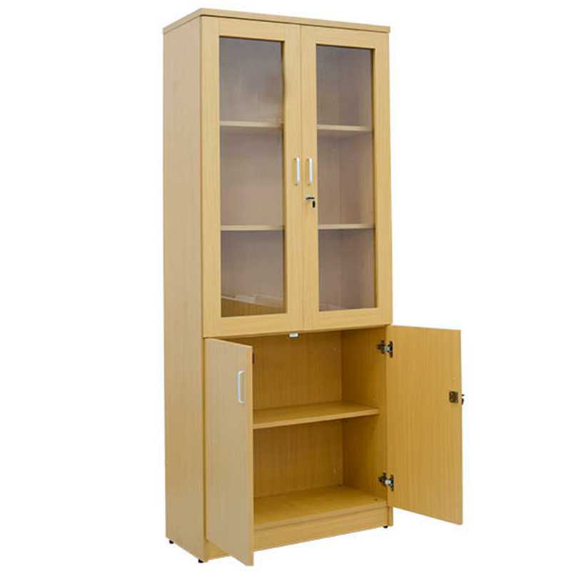 Tủ tài liệu 2 buồng gỗ Melamine, phía trên là 2 khoang cánh kính để tài liệu, phía dưới là 2 khoang cánh mở