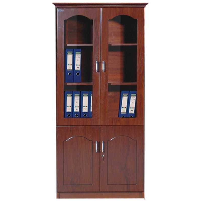 Tủ tài liệu 2 buồng, phía trên là 2 khoang cánh kính để tài liệu, phía dưới là 2 khoang cánh mở.